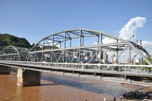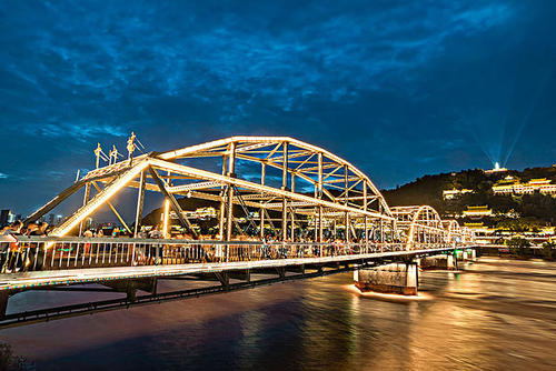 “黄启炎传,铁汉秦章光陇坂;河清海晏,桥虹耀彩卫金城。”这座古老的桥梁依然横跨黄河之上,与白塔山相呼应。“举头迎白塔,缓步过黄河。对岸两山峙,中流意兴多。”赵朴初的诗句颇能勾出人的游兴。和诸多桥梁相比,中山桥的观赏和纪念价值似乎比交通作用更有意义。中山桥原名兰州黄河铁桥,是黄河上修建最早的铁桥,素有“天下黄河第一桥”的美称。位于兰州市区中心白塔山下,南接中山路、南滨河路,北连靖远路、金城路,是兰州市区重要交通枢纽工程。中山桥建成后,时为黄河上游和兰州黄河两岸唯一的桥梁,方便了两岸经济生活,加强了兰州与西北地区各省的政治.经济和文化交流。在旧中国,与济南道口铁桥、郑州铁桥同列为黄河上三大桥梁。1928年为纪念孙中山先生而改称中山桥,沿用至今。