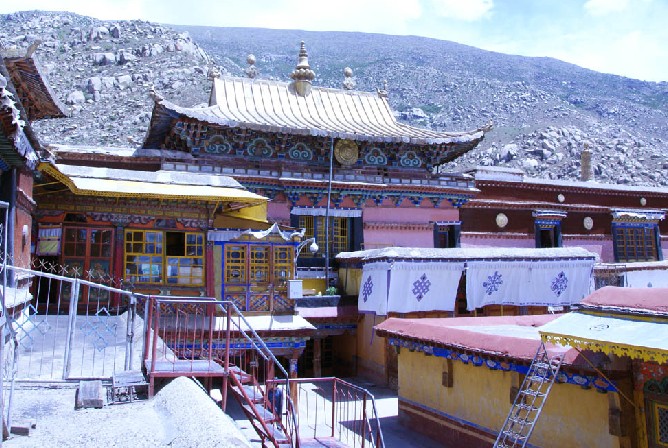 从拉萨市中心坐4路公交、出租车或者三轮车只能到山脚,然后要徒步30分钟上山。寺庙每周三都有法事活动,众喇嘛齐聚一堂念经,场面壮观。