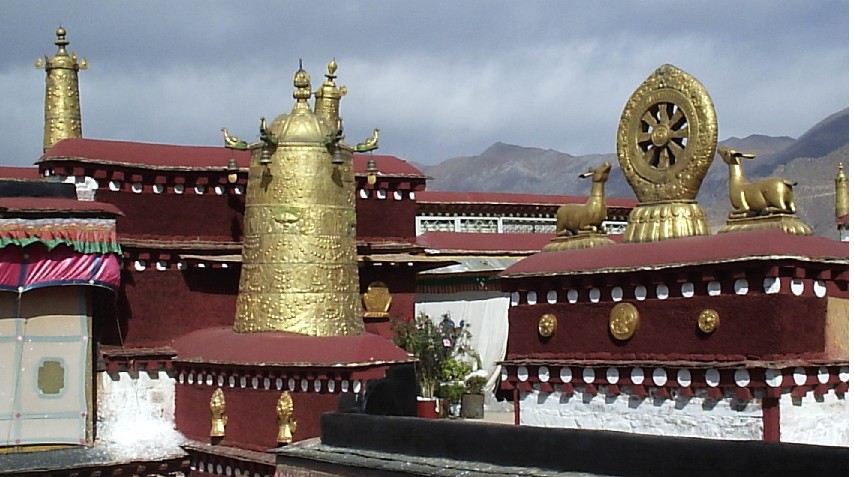 公元641年,“唐王以释迦佛像,珍宝,金玉书橱,三百六十卷经典,各种金玉饰物作为(文成)公主的嫁奁。又给……卜筮经典三百种,识别善恶的明签,营造与工技著作六十种,……以车载释迦佛像,以大队骡马载珍宝、绸帛、衣服及日常必需用具(入吐蕃)。”在文成公主进藏之前的公元634年,版权所有山东聊城聊之旅国际旅行社有限公司,转载必究!泥婆罗(尼泊尔)国王鸯输伐摩已经将其女尺尊公主嫁给松赞干布,尺尊公主入藏时亦随带着一尊释迦牟尼像,大乘佛教的经典著作,各种精巧的工艺品和工匠等等。文成公主进藏后不久,就协助尺尊公主修建了大昭寺,“与此同时,也从中原召来了很多良工巧匠修建惹谟伽神变寺。