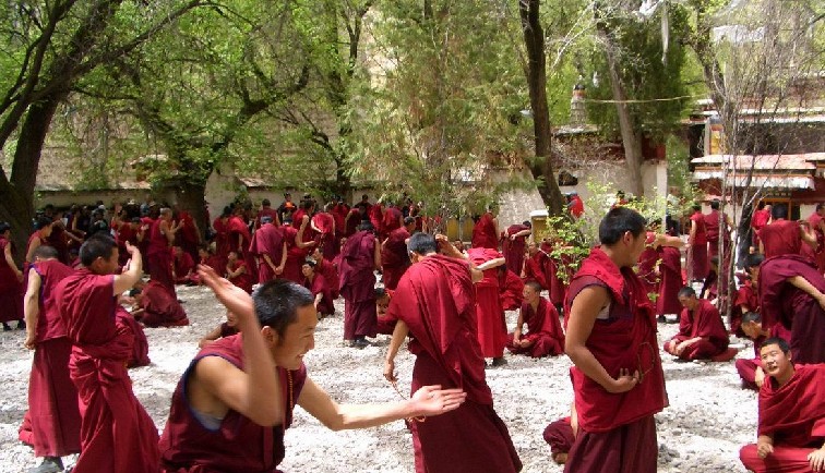 色拉寺辨经每天下午15:00举行,前来观看的人很多,不容错过。