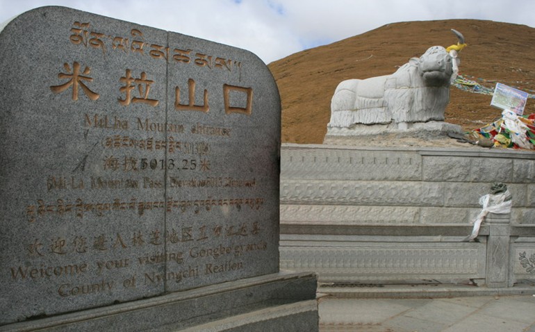 米拉山因其高大雄奇而成为此地藏民心目中的神山,山口上飘撒着许多祭山的经幡和印有经文的纸条,但在山口的最高处,矗立着一座标有“雪域之舟”的西藏耗牛石雕像,石雕的底座格外醒目地刻着一行红色大字“福建泉州市援建”。在蓝天白云下,这座雕像是那样显眼,它是米拉山惟一的标志性建筑,它同时也成为米拉山的一个历史见证,见证着泉州市援藏干部在这里留下的勤劳身影以及和藏族同胞结下的深厚情谊。