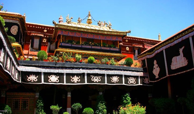 雍布拉康坐落在泽当镇东南约5公里的扎西次日山上,是西藏最早的宫殿。雍布拉康已有2100多年的历史,3曾建筑。一层的前半部为门厅,面积33平方米,门厅处是一个带檐的小平台。后半部是佛殿,供奉松赞干布、文成公主等塑像。第二层亦分前后两部分,前半部分为三面环绕矮墙的平台,后半部是带天井的回廊。五世达赖喇嘛时在碉楼的顶部加盖了四角攒尖式金顶。雍布拉康除部分僧房外,还有一间曾供历代达赖喇嘛来此礼佛时居住的卧室。