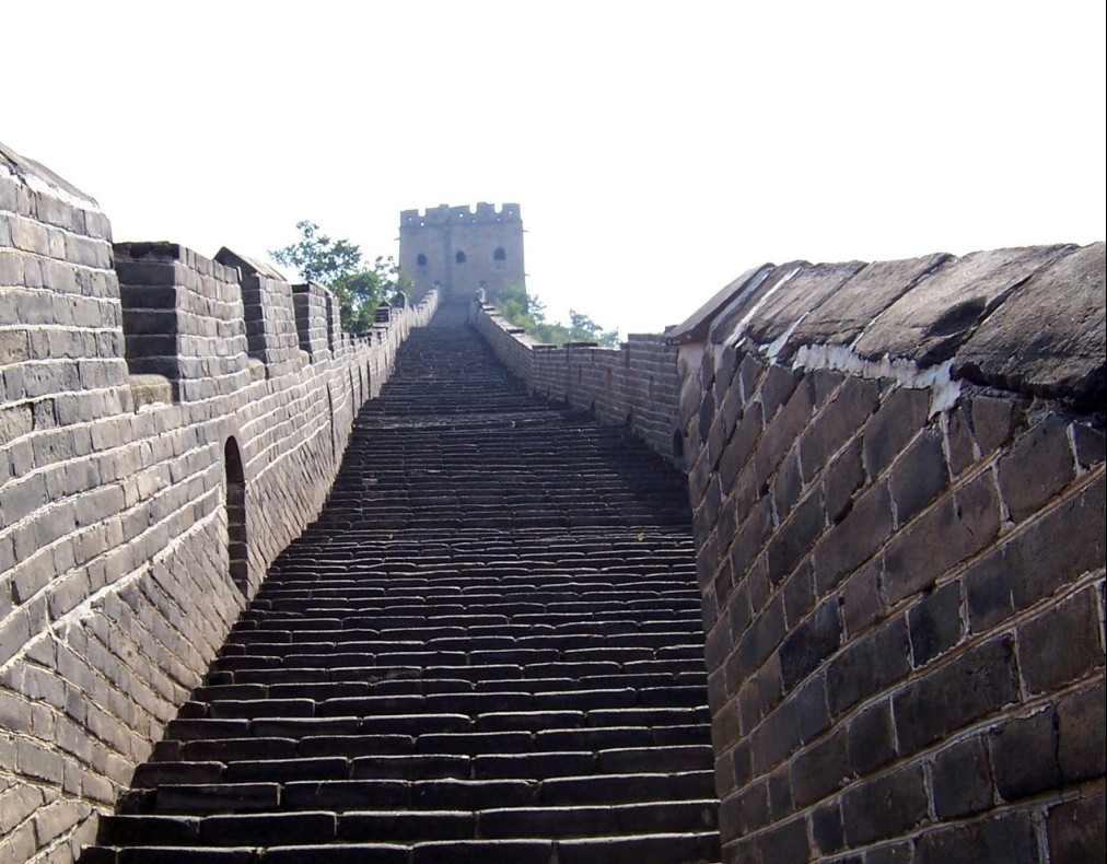 登上第六个敌楼,楼分上下两层:上层是瞭望台;下层是成边将士住房,三面有窗,北边是射箭孔。整个楼用大方石块砌成,显得墩实、坚固,气度不凡长城的最高处为,需登“天梯”而上。天梯高达100米,坡度85度,几近垂直,无胆量的绝难征服。仰头上望,那砖石砌就的台阶仅可容脚,两侧悬崖陡壁,中间这一道台阶细如线,薄如刃,陡如立。