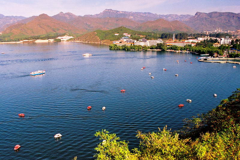 雁栖湖旅游区距怀柔县城8公里,因每年春季有成群的大雁、仙鹤等珍禽候鸟在此栖息,故而得名。湖区气候宜人,湖水清纯碧蓝,是开展水上娱乐活动和休闲度假的理想场所。雁栖湖三面环山。北面群山绵亘、重峦叠嶂,万里长城隐现其间,西面有红螺寺,南面有一望无际的华北平原;东岸有元宝山、金灯山。登山远眺,蓝天碧水,绿野田园,壮丽景色尽收眼底。