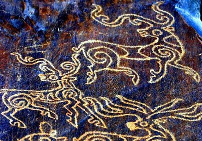 在西藏日土县境内的日松日姆栋、鲁日纳卡,日土山洞古壁画是用坚硬的石头或其它硬物在岩面或岩石上刻凿而成,线条笔划有深有浅,还有少数彩绘画面。岩画内容十分广泛,有狩猎、宗教祭礼、骑乘、放牧、农耕、日、月、山、牛、马、羊、驴、羚羊、房屋、人物等。