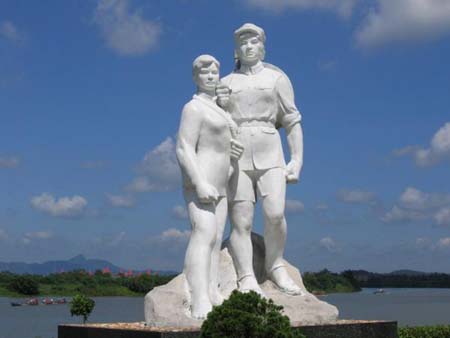 红色娘子军是中国革命的壮举,也是世界妇女争取解放斗争的突出典型。塑像由花岗石雕刻而成,坐北向南,高3.7米,连底座总高6.8米,占地面积40平方米。塑像后面是园林花圃。塑像将红色娘子军脚穿草鞋、肩背竹笠、风尘仆仆的一代英雄的气概充分展现。塑像底座正面有胡耀邦金字题词:红色娘子军。现为省级革命纪念建筑保护单位。
