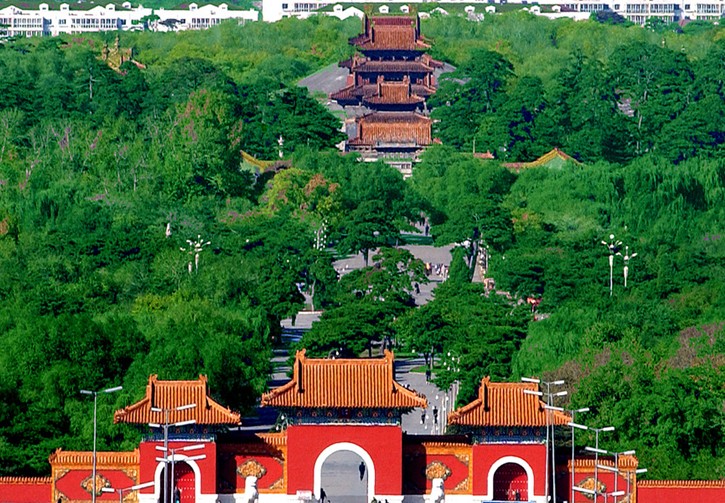 清昭陵是清朝第二代开国君主太宗皇太极以及孝端文皇后博尔济吉特氏的陵墓,占地面积16万平方米,是清初“关外三陵”中规模最大、气势最宏伟的一座。位于沈阳(盛京)古城北约十华里,因此也称“北陵”,是清代皇家陵寝和现代园林合一的游览胜地。园内古松参天,草木葱茏,版权所有山东聊城聊之旅国际旅行社有限公司,转载必究!湖水荡漾,楼殿威严,金瓦夺目,充分显示出皇家陵园的雄伟、壮丽和现代园林的清雅、秀美。昭陵除了葬有帝后外,还葬有关睢宫宸妃、麟趾宫贵妃、洐庆宫淑妃等一批后妃佳丽,是清初关外陵寝中最具代表性的一座帝陵,是我国现存最完整的古代帝王陵墓建筑之一。