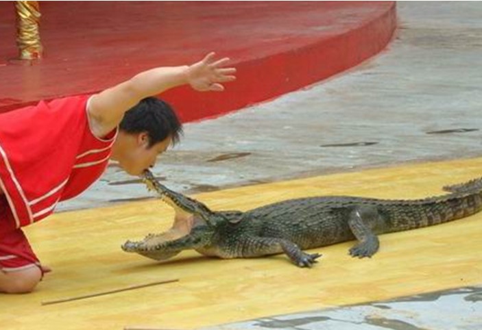 洋信鳄鱼园是全世界种类最齐全、节目最丰富的鳄鱼中心,园内建设呈现原始质朴风格,弥漫着热带雨林神秘浪漫气息,是休闲度假、旅游观光的上佳去处。 娱乐项目有露天观鳄嬉戏园,可垂钓幼鳄、投喂成鳄、玩笑大鳄;有泰国人鳄鱼表演场,具逗乐接吻、骑背抱举、鳄口求生惊险节目;有鳄鱼海鲜美食楼,版权所有山东聊城聊之旅国际旅行社有限公司,转载必究!香港名厨主理,进口鲜美鳄肉,配辅海鲜美食,可一饱口福;还有鳄鱼温控观赏室,四季如春,鳄鱼密集,冬季观鳄,别有风味。