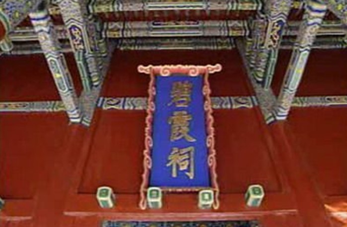 南大门筑于重台上,前后廊式。廊下东、西山墙上筑神台,供青龙、白虎、朱雀、玄武四方护卫神铜像。