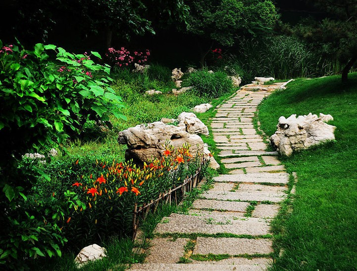 园内山势起伏,碧草如毯,石径曲折,花溪蜿蜒,四季树木荫翳,春来繁花似锦,一座座名人雕塑错落有致地分布其中,或坐、或立,静谧安详,栩栩如生,平添了许多文化气息。 在这里人文景观与自然景观水乳交融,加之阵阵幽香袭人,丝竹之声悠扬,如诗如画,令人陶醉。一对对新人不知为景致所动还是为气氛所染,总不忘在结婚大喜之日来到这里, 于雪纱翠坪间留下永恒的美好回忆。于是,便有了“碧水映绿树,美景衬佳人”之说。在喧嚣尘世中身心疲惫的都市人闲暇之时来到这里,便仿佛走进了世外桃源,或赏景、或垂钓、或闲坐小酌都会心清气爽,流连忘返。