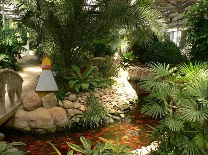 由热带雨林植物、热带沙漠植物和南国花卉三个观赏区组成,共种植有150多个珍贵品种的观赏植物,让您置身于花的世界、花的海洋,充分领略异域风光。如有兴趣,您还可以在小山下的水池旁,亲自参与有趣的钓鱼活动。