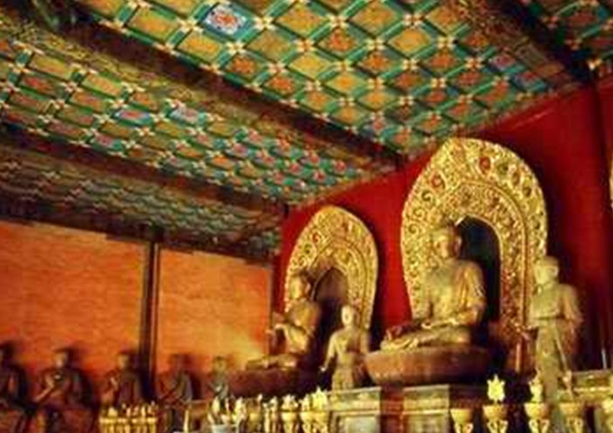 又称前寺,位于承德市街东的武烈河东岸。依山傍水,风景秀丽。清康熙五十二年(1713年),诸蒙古王公为庆贺康熙帝60寿辰,上书“奏请”在承德避暑山庄外,围建一寺院作庆寿盛会之所。康熙帝欣然“恩准”,遂建造了溥仁、溥善二寺。溥善寺早已荒废,溥仁寺便成康熙年间仅存的庙宇。溥通普,普遍、广大意,有皇帝深仁厚爱普及天下之意。溥仁寺建筑形制为汉族庙宇的“伽蓝七堂”式,四周有护墙环。山门内主轴线上布置主殿三座:天王殿、慈云普阴殿、宝相长新殿。天王殿内供佛像 6尊:弥勒佛、韦驮天将和四大天王。慈云普阴殿,单檐歇山顶,描金彩绘,雕梁画栋,光彩夺目。殿内供过去佛迦叶佛、现在佛释迦牟尼佛、未来佛弥勒佛。释迦佛两侧为其两大弟子迦叶和阿难。东西坛上供姿态各异的十八罗汉。天花板上有密宗六字真言。宝相长新殿,版权所有山东聊城聊之旅国际旅行社有限公司,转载必究!单檐硬山布瓦顶,檐柱描金彩绘。内供 9尊无量寿佛。