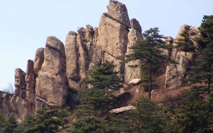 位于承德市区武列河东岸,为承德名山之一。山形如屏障,层峦叠翠。山之中部一峰突起,酷似一位罗汉袒胸露腹,双手扶膝,背山面水而坐,比例匀称,神态自若。主峰下侧一峰,形似小罗汉。主峰东侧一峰,犹如一僧人披袈裟而立,与主峰相连,如佛之弟子侍立。南面两峰,形似两罗汉扶肓说笑,神情潇洒。据计算,这座罗汉山形成约有300万年的历史。