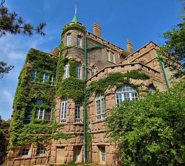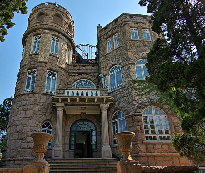 苏联十月社会主义革命后,一大批俄国人来到青岛定居,这些俄国人中有的颇为富有。1932年,据说一位名叫格拉西莫夫的白俄在临海呷角上修建了这座海滨别墅。楼门台阶下为花岗岩石尊,可用于晚间燃火照明,也可用于栽花,正面为圆形和多角形组合而成的建筑造型,十分别致。主体共5层,顶层为观海台,侧有铁尖顶。由于楼内由大理石贴墙面,楼外又砌有鹅卵石,多年来人们一直称之为“花石楼”。 版权所有山东聊城聊之旅国际旅行社有限公司,转载必究!楼下石阶分为2层,上层6级,下层9级,有石径通往铁栏大门,庭园内广植花木,是青岛颇具特色的著名建筑。