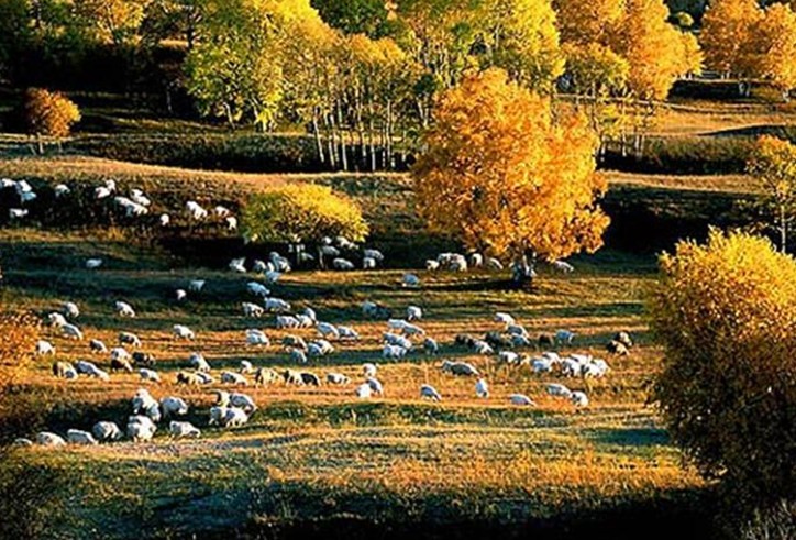 森林公园北、西部被广亵的草原所环抱。绿茵如毡,坦荡无际,风吹草低)牛羊成群。极盯远眺,蓝天、白云与草原、羊群相融相连。间或传来骏马的嘶鸣和牧羊人的音哨,令人心旷神怡,浮想联翩。