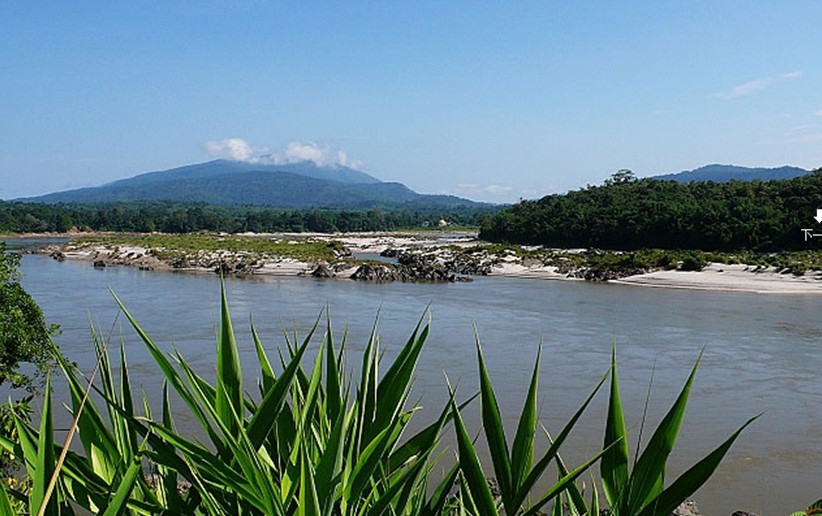敏宋北距密支那43公里,又叫“三江口”,是恩梅开江和迈立开江的汇合处。敏宋是伊江的神来之笔,是克钦邦的精典景点。站在硕大的白体金塔前的草亭内,江风习习,俯瞰壮丽的三江口,顿觉胸襟开阔,思绪万千。东边那条叫恩梅开江,西边这条就是迈立开江,两江之间礁峭石奇,江水奔涌,在巨大的鱼嘴石处交汇,合二为一,浩荡南行,气势如虹。恩梅开江发源于西藏察隅县境内,藏语叫“美尔东曲”;南下入云南怒江州贡山县境后称独龙江;进入克钦邦后更名为恩梅开江。迈立开江源自中缅边境的大雪山南麓,其东边是江心坡,西边是枯门岭。这两条江的性格一阴一阳,一刚一柔,阴阳结合后,便成了缅甸的“天惠