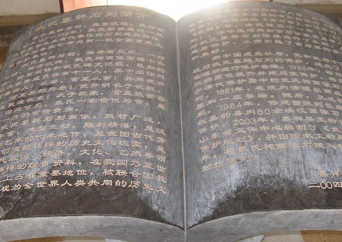 有关武氏墓群石刻的著录,最早见于北宋欧阳修的《集古录》,版权所有山东聊城聊之旅国际旅行社有限公司,转载必究!记录了武氏墓群武班碑和武荣碑。其子欧阳裴在《集石目录》中亦有记述。新中国建立后,有骆承烈、朱锡禄编著的《武氏墓群石刻》、朱锡禄编著的《武氏祠汉画像石》和贾庆超编著的《武氏祠汉画石刻考评》。