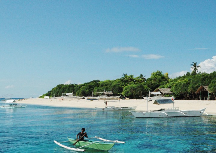 薄荷岛(BoholIsland)是菲律宾第十大岛,距离宿雾麦克坦岛70公里,是个珊瑚岛,碎珊瑚被海水冲成的沙滩,不是像面粉那样的细沙,但即使在暴晒的烈日下,踩上去仍是凉凉的。沙滩雪白雪白,把海水映得层次分明,近处是浅浅的绿,远处是深深的蓝。