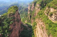 峡谷群有三大景色:一是奇峡。谷底狭深、峡岸壁立、成群出现,构成了太行奇观;二是峻峰。周围山峰都是几近90度的红崖绝壁,峰峦叠嶂,上下错落,形成了高低变化,犬牙交错的天际线;三是飞瀑。黄巢岩下有一奇特而又壮观的瀑布,瀑布不是飞流直下,而由悬崖顶一深潭中翻腾而出,山泉奔流至此,钻入一石瓮,泉水在瓮中回旋而出,从数十米高的峭壁上飞溅而上。站在瀑布之下,水声、风声骤起,一股清风寒沁人入五脏,令人备感舒畅。