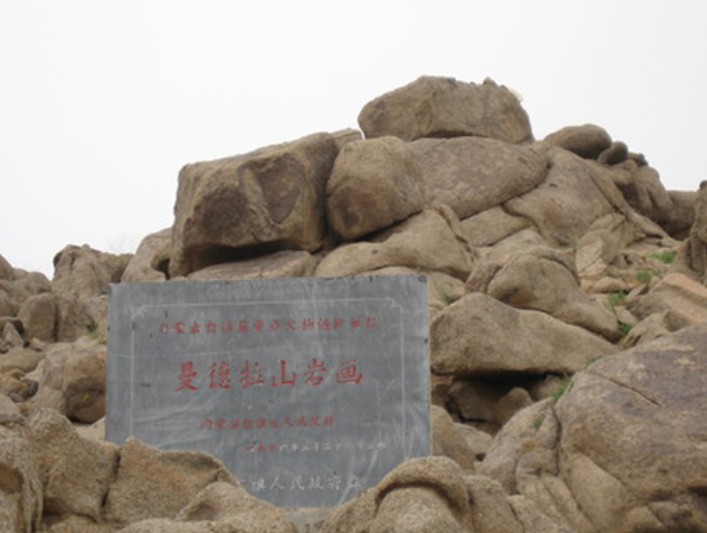 曼德拉山岩画位于阿拉善右旗孟根布拉格苏木克德呼都格嘎查境内。山峦四周为草原牧场,远远望去颇有威严壮观之势,尤其是山中沟边的黑色岩石群,起伏蜿蜒,上边刻有很多世间罕见的岩画,与山下的茫茫草原组成了一幅奇伟瑰丽的自然画卷。 曼德拉山岩画极为密集,分布在东西3公里、南北5公里的山地上。据不完全统计,现已发现岩画6千余幅,这样数量众多的岩画在其它地区极为少见。