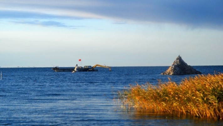 近年来,因主要补给水源额济纳河注入湖中的水量减少,居延海已逐渐干涸。