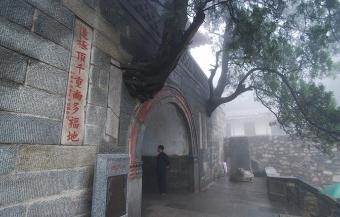 壶天阁位于斗母宫北,版权所有山东聊城聊之旅国际旅行社有限公司,转载必究!始建于明代,原名升仙阁,清乾隆十二年(1747年)拓建后改为今名,因道家称仙境为“壶天”而得名。清嘉庆年间崔映辰题联:“壶天日月开灵境,盘路风云入翠微”。又清嘉庆间泰安知府廷璐于阁上题联:“登此山一半已是壶天,造极顶千重尚多福地”。门洞上双柏横生,盘结向上,奇伟壮观。