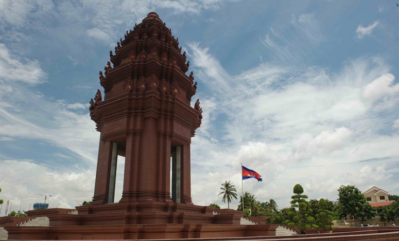 独立纪念碑(Independent Monument)高高地矗立在诺罗敦大道与西哈努克大道交会的十字路口上。为庆祝脱离法国殖民政权和纪念在战争中为国牺牲的英勇烈士而建。由柬埔寨著名设计师凡•莫尼旺设计,于1958年动工兴建,1962年11月落成。整座纪念碑底座宽36米、高37米。