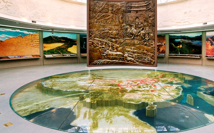油画“长城万里图”以写意和写实相结合的表现手法将中国长城的主要景观浓缩于画卷之中,油画面积为220.5平方米,为西北之最。超写实雕塑场景-“西出阳关、春风玉门”以河西长城的阳关和玉门关为背景,运用现代高分子材料为手法,生动逼真地再现了盛唐时期丝绸之路上中西文化交流的盛况。版权所有山东聊城聊之旅国际旅行社有限公司,转载必究!“醉卧沙场”场景的背景油画描绘了“大漠孤烟、长河落日”恢弘壮阔的边塞风光,雕塑则表现了“醉卧沙场君莫笑,古来征战几人回”征战场面的残酷、悲怆和豪壮。