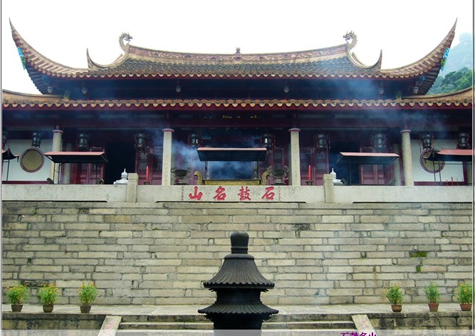 石鼓名山坊新建于1972年,各路游人汇集于此,即可进入山门,但有一事奇怪,无论是步行,乘车还是坐缆车,即使进了山门,沿途都看不到规模宏大的涌泉寺踪影。原来,这是涌泉寺独特的建筑构思。整个寺院依山度势,建在白云峰的颌处。堪舆行家称为“燕窝穴”。全寺藏而不露, 素有“进山不见寺,进寺不见山”之称。