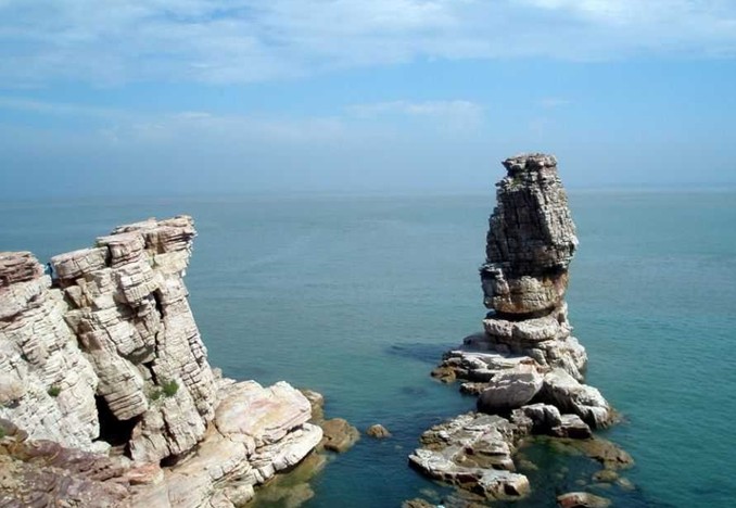宝塔礁,因礁石似宝塔而得名,位于庙岛西北处的犁具把岛,高约21米,直径约5米,其状巍然,宝塔礁无论从哪个角度观赏,都像一座挺立的巨塔,变换不同的位置,会领略出不同的天工神韵,让人觉得处处皆奇。