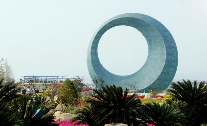 2100米长的园博大道从大门向大海深处延伸。说是大道,其实是一个带状景观公园,按照金木水火土的理念设计建造。园博大道把9个岛屿串成了一条独具南国特色的珍珠岛链,各地园区星罗棋布分散在园博大道两侧,游人置身其中就能领略到园博园别样的风情。
