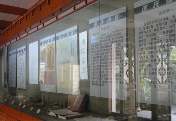 该馆大门上方悬以“王谢古居”匾额, 内分东、西两个院落。东院内来燕堂堂匾系当代著名书法家沙曼翁书写,以隶体杂汉简,笔锋遒劲有力,象征着六朝时期“王谢大宅”的风范。