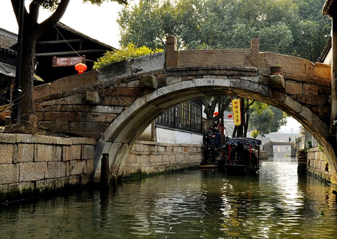 甪直与苏州古城同龄,是一座具有2500多年历史的古镇,悠久的历史孕育了古镇甪直丰富灿烂的文化,是首批中国历史文化名镇之一。水是古镇的灵魂。甪直地处太湖流域,是水分水析、水系水萦、水抱水环的泽国典型,素有“五湖之厅”、“六泽之冲”的美誉。甪直水秀,桥也美。在古镇区5。6公里长的河道上,历史上曾横架着形式多异的江南小桥72座半。有多孔的大石桥、独孔的小石桥。宽敞的拱形桥、狭窄的石板桥,双桥、姐妹桥、钥匙桥、半步桥等。可谓“绿浪东西南北水,红栏七十二半桥”。古镇依水而建,前街后河,人家枕河而眠。漫步古镇,领略小镇风光。观赏古桥驳岸,看看渔船人家,真是别有风韵,让人回味无穷。
