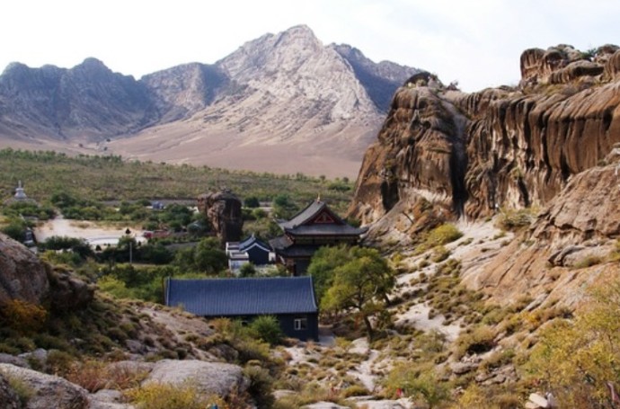 巴林左旗召庙位于内蒙古自治区赤峰市巴林左旗林东镇南15公里处 ,当地人也叫宝格达召或阿贵图庙(蒙语译音)。召庙始建于辽王朝,占地面积1023.35亩,由石窟和外殿两部分组成,石窟开凿于辽代,史称——真寂之寺,外殿建于清代,名为善福寺(前殿)及千佛殿,是内蒙古自治区级重点文物保护单位。真寂之寺位于群山之中。圣水、别愣、灵岩三山鼎立,自然造就一个箕形山谷。灵岩山从谷地骤然拔起,悬崖峭壁,十分险峻。一桃形巨石仅以三点支撑,耸立在峰顶崖端,版权所有山东聊城聊之旅国际旅行社有限公司,转载必究!契丹石窟开凿在桃石山东南面陡壁上,分中、南、北三窟。窟前是清代续建的喇嘛庙“善福寺”。窟内有千佛像,形态各异。