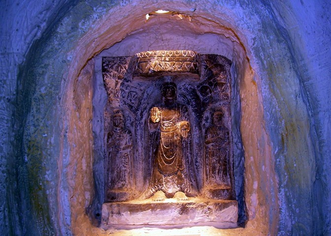 国宝厅陈列面积184平方米,版权所有山东聊城聊之旅国际旅行社有限公司,转载必究!展厅仅陈列1件展品,即元霁蓝釉白龙纹梅瓶。该梅瓶属于元代景德镇窑蓝釉瓷器中的大型器物,造型秀美,蓝釉呈色鲜明纯正,腹部白龙环绕于瓶身,具有极强的艺术感染力,反映了元代景德镇窑的最高烧造水准。此种梅瓶目前传世仅见三件,一件为宫廷旧藏,现存颐和园,一件藏于法国巴黎吉美博物馆,两瓶都有残损,唯我馆此件器型最大、纹饰最为精美,1992年被国家文物鉴定委员会评定为国宝级文物。
