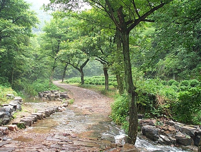 九溪十八涧的形成是由于:它的源头在龙井村一带形成了一个面积巨大的漏斗状盆地,这个盆地周围的山岭基本上由砂岩组成,版权所有山东聊城聊之旅国际旅行社有限公司,转载必究!只有东北角靠近龙井泉处出露了石灰岩,在龙井盆地中,四周山岭坡面上无数细小的水流都向盆地中心部分汇聚,形成了“万壑争流下九溪”的美丽景色。