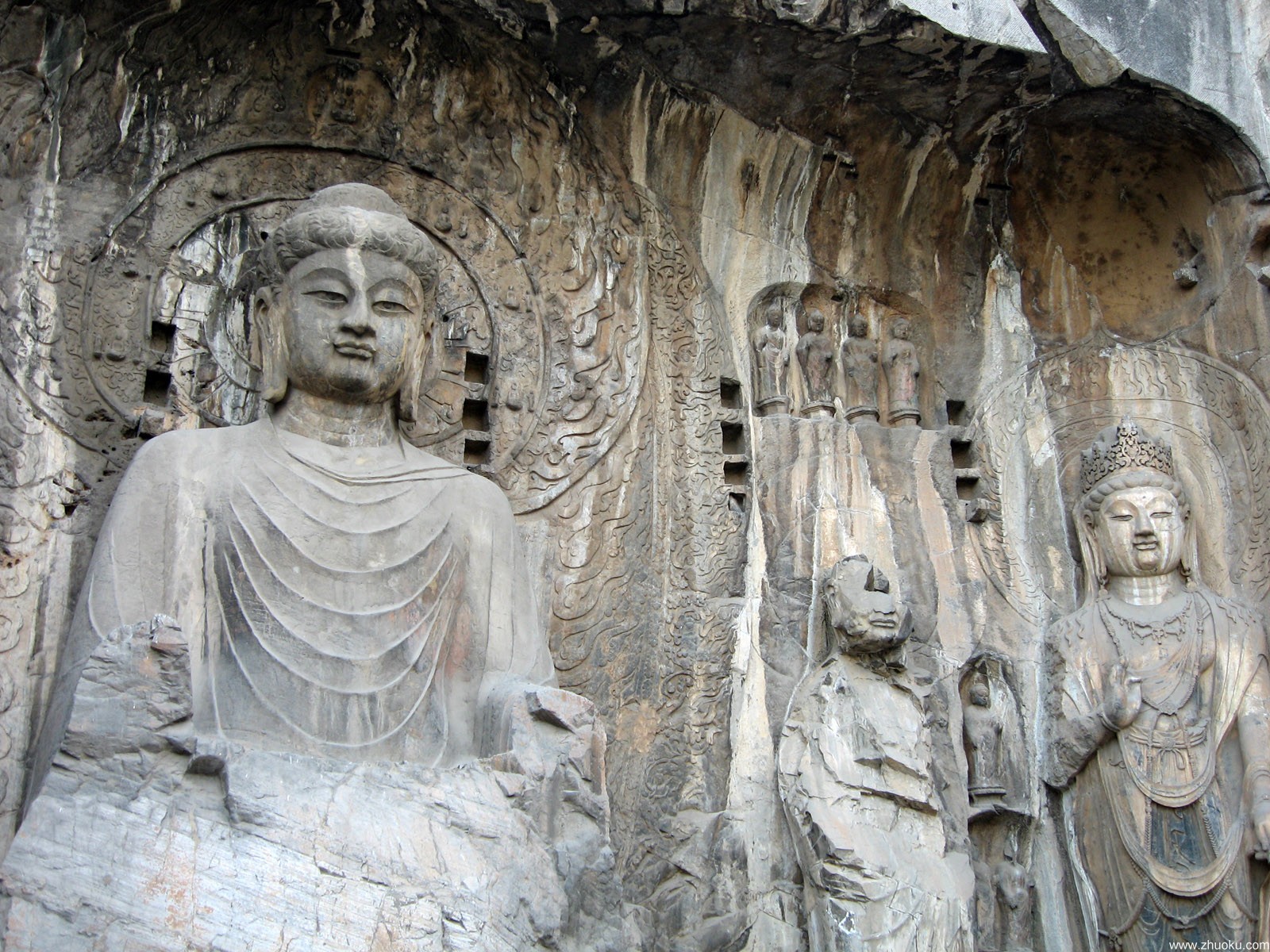 龙门石窟是中国石刻艺术宝库之一,位于河南省洛阳市南郊伊河两岸的龙门山与香山上。开凿于北魏孝文帝迁都洛阳之际,之后历经东魏、西魏、北齐、隋、唐、五代的营造,南北长达1公里,至今存有窟龛2345个,造像10万余尊,碑刻题记2800余品,其中“龙门二十品”是书法魏碑精华,褚遂良所书的“伊阙佛龛之碑”则是初唐楷书艺术的典范。龙门石窟延续时间长,跨越朝代多,以大量的实物形象和文字资料从不同侧面反映了中国古代政治、经济、宗教、文化等许多领域的发展变化,对中国石窟艺术的创新与发展做出了重大贡献。2000年入选世界文化遗产。