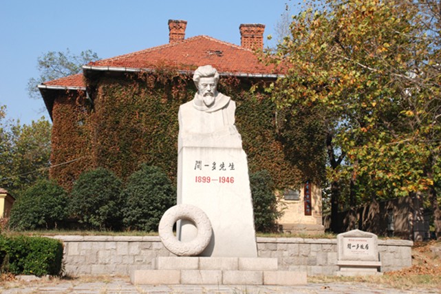 闻一多(1899年11月24日-1946年7月15日),汉族,原名闻家骅,又名多、亦多、一多,字友三、友山。浠水人。13岁考入北京清华学校,23岁留学美国,学习、研究文学和艺术。中国现代伟大的爱国主义者,坚定的民主战士,中国民主同盟早期领导人,中国共产党的挚友,诗人,学者,民主战士。新月派代表诗人,作品主要收录在《闻一多全集》中。1937年任西南联合大学教授。随后参加反对独裁、争取民主的斗争。版权所有山东聊城聊之旅国际旅行社有限公司,转载必究! 1946年7月15日,他痛斥国民党的黑暗统治,作完《最后一次的讲演》之后,当晚被反动特务暗杀。 人们对闻一多的爱国精神给予高度评价,称其为“民主战士、革命学者和爱国诗人”。