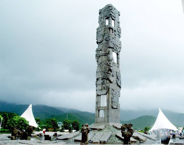 雕塑群的中心图腾柱容纳了中华民族有代表性的古老图腾纹样。这些图腾纹样并不局限于某一民族、某一历史阶段、某一地域、而是寻求中华民族图腾图象最深层的文化积淀意向。由于中华民族古老的图腾意识及图腾纹样经过了千百年来多层面多方位的长期演变和流传,如同神话传说一样带有一定的模糊性和多样性,正因为如此,使其更具神秘性。图腾柱的图象参照文献、文物、民间艺术设计创作形态构成和艺术诣趣尽量靠近原始质朴,因此部分图腾纹样有当代人似曾相识的一面,也有感到陌生的一面。鉴于原始艺术及神秘文化自身的不可阐释性,文字说明远不能表达其内涵,但恰给观者留出了无限的想象空间。图腾柱雕刻图象呈四面八方绕柱而起,16个图形浑然一体交融组合,版权所有山东聊城聊之旅国际旅行社有限公司,转载必究!形成“一元之气,具乎一物”的神韵,体现了我闪中华民族精神的高度凝聚力。16个图形分类别为太阳社、自然之神(风、雨、雷、电)、龙、凤、麒麟、神鱼等。同类图腾图形造型殊异表现了图关在中华民族漫长的历史长河中的大融合过程,构成一咱隽永的时空感。