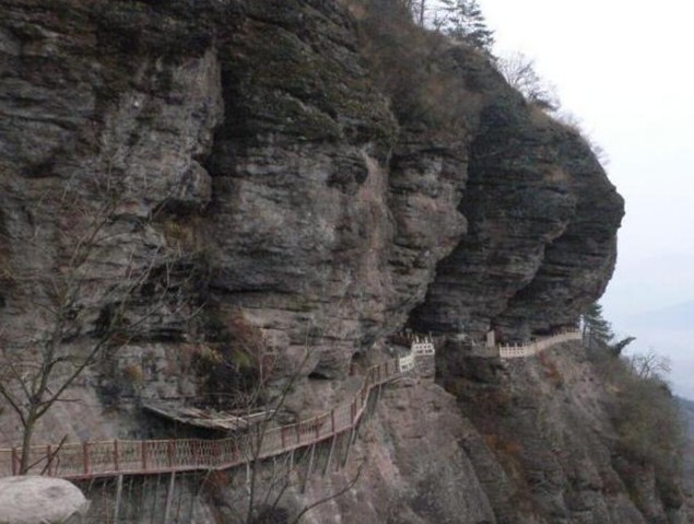 沿三层岩酷似“巴蜀栈道”的百余米山体自然凹槽修建而成,内置《西游记》、《八仙过海》、《七仙女》、《牛郎织女》等神话传说故事群塑。人物与其他塑像造型逼真动人,栩栩如生,令游者如置神话中。