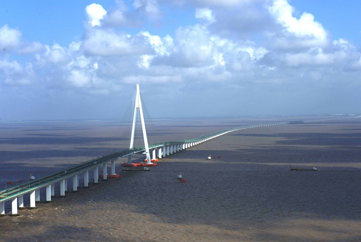 杭州湾跨海大桥是一座横跨中国杭州湾海域的跨海大桥,它北起浙江嘉兴海盐郑家埭,南至宁波慈溪水路湾,全长36公里,比连接巴林与沙特的法赫德国王大桥还长11公里,已经成为中国世界纪录协会世界最长的跨海大桥候选世界纪录,成为继美国的庞恰特雷恩湖桥和青岛胶州湾大桥是目前世界上最长的跨海大桥后世界第三长的桥梁。