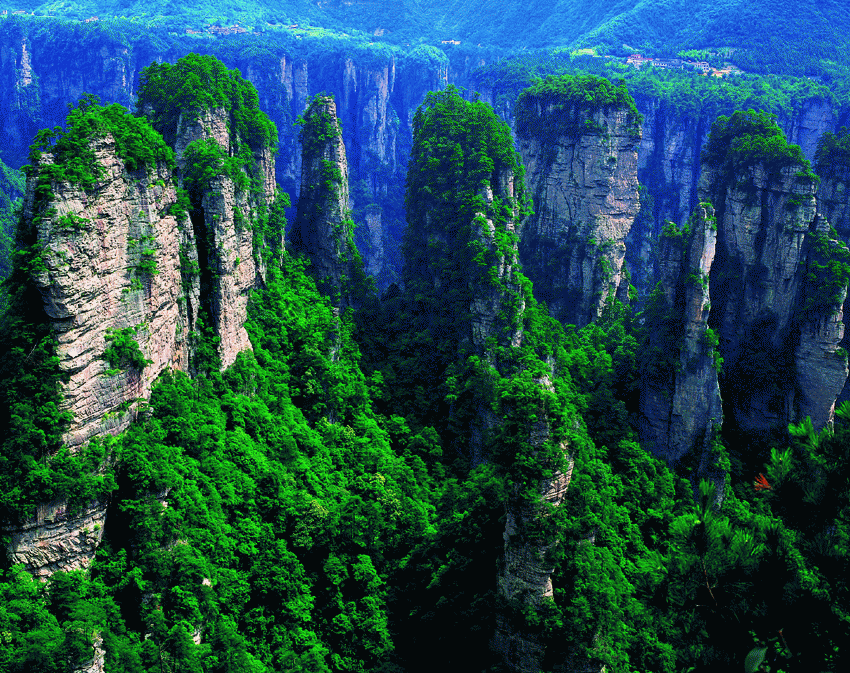武陵源属世界上罕见的砂岩风林地貌,整个景区内,沟壑纵横,岩峰高耸,绿树翠曼,兽鸟成群,有“大自然迷宫”、“天下第一奇山”这美誉。亿万年前,这里曾是一片波涛翻的海洋。岁月悠悠,沧海桑田。大自然威力无边的“燕山运动”,将这里逐渐抬升为陆地、山脉、江河,随后又以挥洒自如的鬼斧神工在这里“穿透切割”、“精雕细琢”,从而有了今天这般个有原始生态体系的砂岩、峰林、峡谷地貌,构成了溪水潺潺、奇峰耸立、怪石峥嵘的独特自然景观。