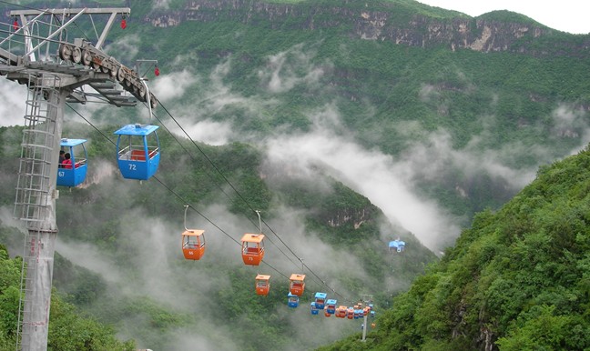 焦作青龙峡“看谷不见谷,闻水不见水”。 版权所有山东聊城聊之旅国际旅行社有限公司,转载必究!站在峡谷顶部俯瞰青龙峡,但见峡谷之上群峰对峙,错落有致,云萦雾绕,烟波浩淼,且能够听到悦耳的鸟鸣和涓涓的流水声,但无论站在哪个位置,无论从哪个角度,都无法看清峡谷的全部,无法看到水流的方向,恍如梦境中一般。