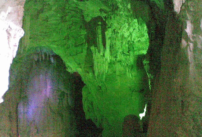 三奇:洞内水声如潮。洞分上下两层,水流相通,水势湍流,落差高达50米;