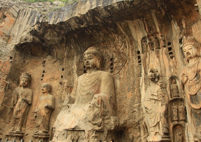 奉先寺是龙门石窟中规模最大、最具有代表性的露天佛龛,形态各异、刻画传神的造像显示了盛唐雕塑艺术的高度成就,成为石雕艺术史上的奇观。