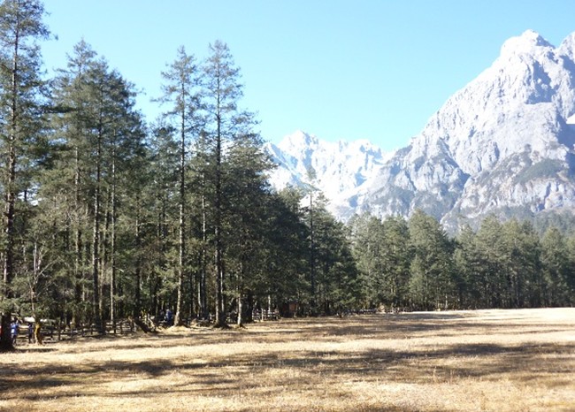 云杉坪,土语称“游午阁”即“情死之地”又名锦绣谷,海拔3240米,是一块隐藏在原始云杉林中的巨大草坪。位于玉龙雪山东麓的山箐里,在雪山主峰的右下方。