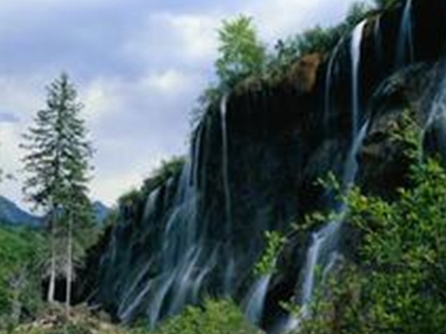 纵揽我国瀑布,或从断崖蓦然跌下,势若大海倒泻,银河决口,声势恢宏;或从峭壁凌空飞落,状如白绫脱轴、袅袅娜娜,姿态千般;或从洞上翻崖直下,形若水晶珠帘,垂挂洞前,妙趣横生。而九寨沟瀑布群,则从长满树木的悬崖或滩上悄悄流出,瀑布往往被分成无数股细小的水流,或轻盈缓慢,或急流直泻,千姿百态,妙不可言,加上四周群山叠翠,满目青葱,至金秋时节,层林尽染,瀑布之景就更为神奇秀丽了。