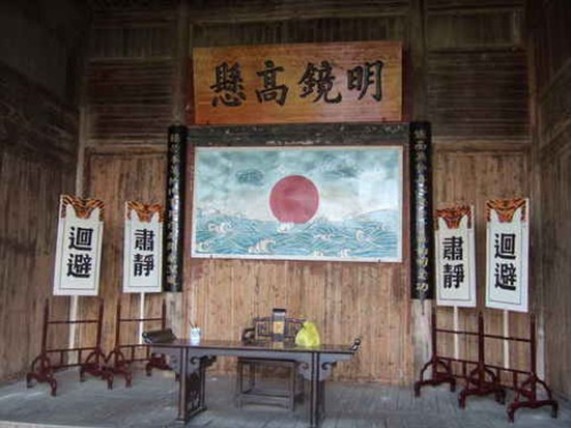 现存浮梁古县衙,建于清朝道光年间,距今 170年,占地64495平方米(95亩),规模宏伟,是我国江南唯一保存完整的封建时代县级衙署,有“中国第一县衙”、“江南第一衙”之美称。现保留中轴线上的照壁、头门、仪门、衙院、大堂、二堂及三堂,基本保持了县衙原有风貌。整座建筑坐北朝南,错落有致,廊道相接,浑然一体,庄严和轻松并存,厚重与俏雅生辉。游历古县衙,在欣赏“奇妙”建筑艺术的同时,也感受到封建衙门官府威严气派。衙署内陈列了古代官服、刑具、十八般兵器、讯杖、官轿、夹棍,“帝制早废,县衙犹存”,“珍贵史迹,进门有益”,游客至此,既可以领略古代衙府的风貌,了解封建社会衙门的历史、政治、文化知识;也可以寓教于乐,过把古代五品知县瘾,置身其中,穿越岁月时空走廊,寓教于游玩之间。