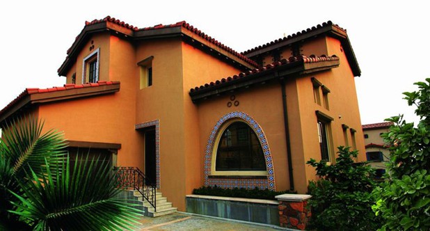 再观那别墅,映入眼帘的是一片绿色的世界,绿门、绿窗、绿栏、绿柱、绿廊,而属于建筑第五立面的屋顶,也漆成了墨绿色,而连那原先的灰褐色石墙,也因“爬墙虎”、美国凌霄爬满而终成绿色,予人静谧安宁而又清新的感受。