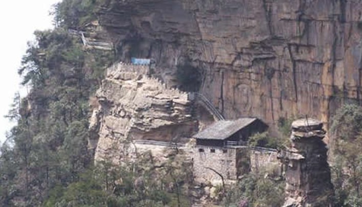 海拔 1122米,清末自民国时则土匪盘踞于此,版权所有山东聊城聊之旅国际旅行社有限公司,转载必究!留有27步石级,寨上有孤寨悬梯、悍匪窟穴等残迹。